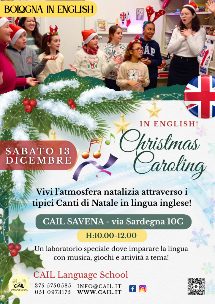 VENERDÌ 13 DICEMBRE presso CAIL Bologna Savena in Via Sardegna 10C ci aspetta una serata magica con il nostro Christmas Caroling! Unisciti a noi per cantare insieme le canzoni natalizie più amate e immergiti nella magia delle feste! Un’occasione perfetta per praticare l’inglese, fare nuove amicizie e condividere lo spirito natalizio!