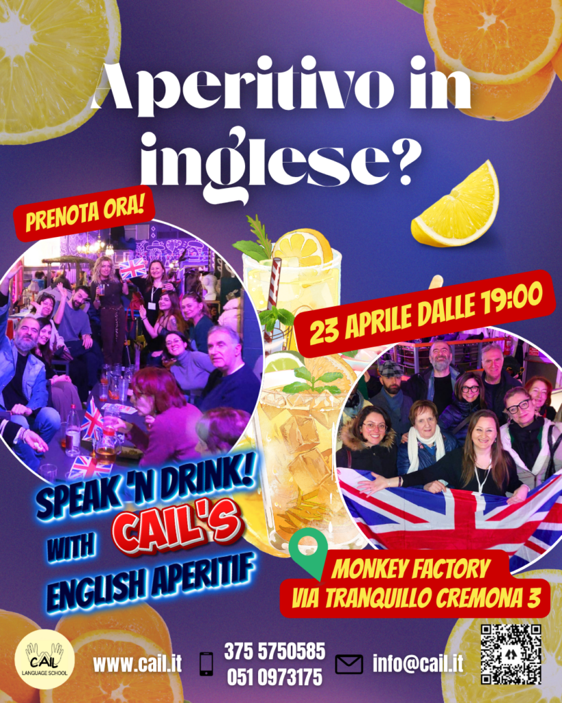 Parlare inglese non è mai stato così naturale: agli English Aperitifs di CAIL impari in modo pratico attraverso conversazione, giochi e attività di gruppo in un’atmosfera rilassata e conviviale.