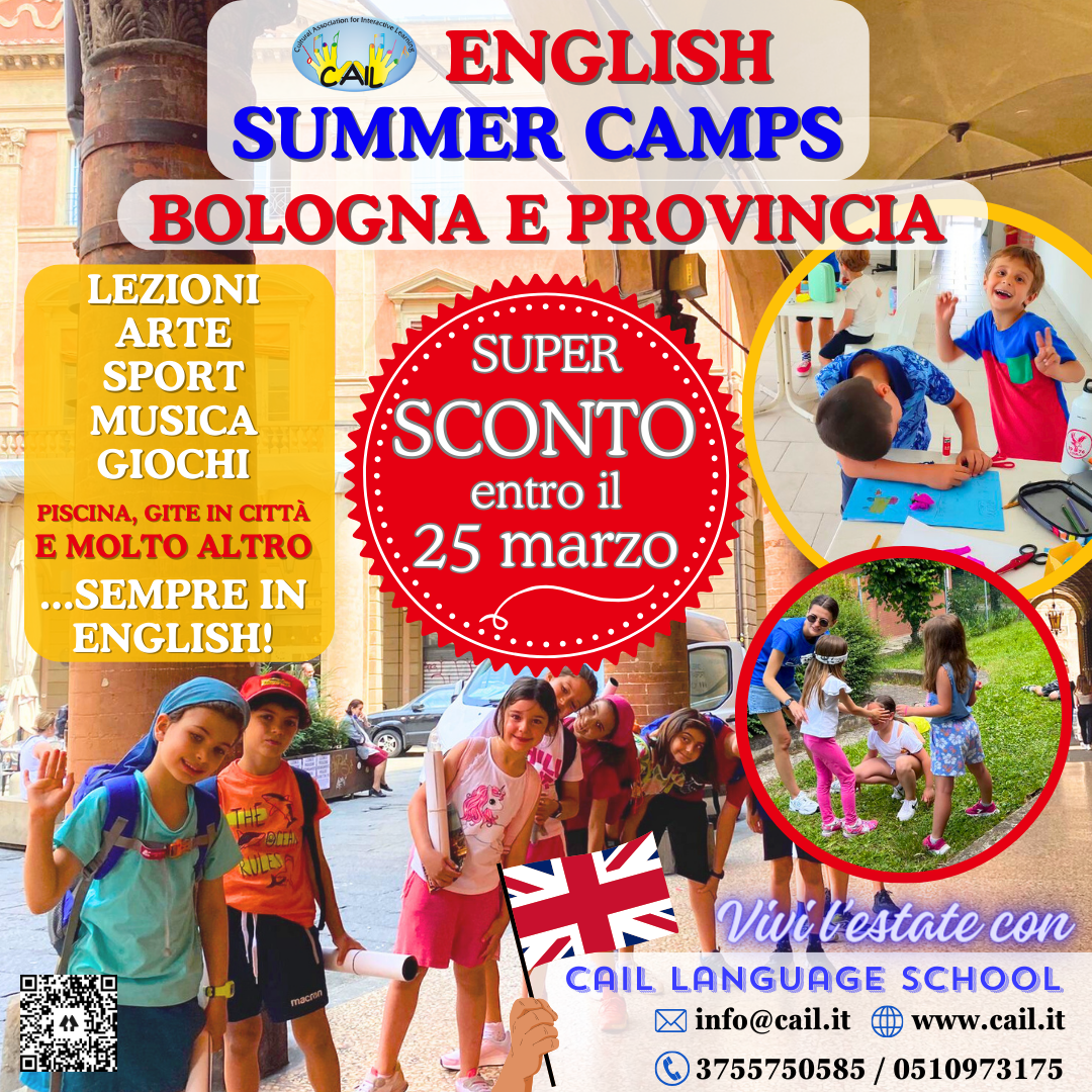 Per tutto l’Anno 2024 c’è uno SPECIAL DEAL per i Tesserati CAIL: tre appuntamenti GRATIS di ENGLISH FULL IMMERSION a Bologna per tutte le età con la Tessera da €15 valida fino a dicembre!