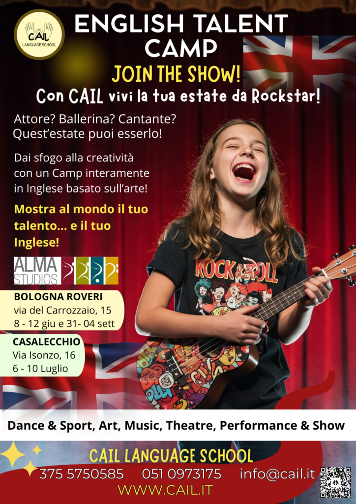 Vivi un’estate all’insegna della creatività, dell’energia e della lingua inglese con l’English Talent Camp di CAIL Language School, in collaborazione con Alma Studios!
